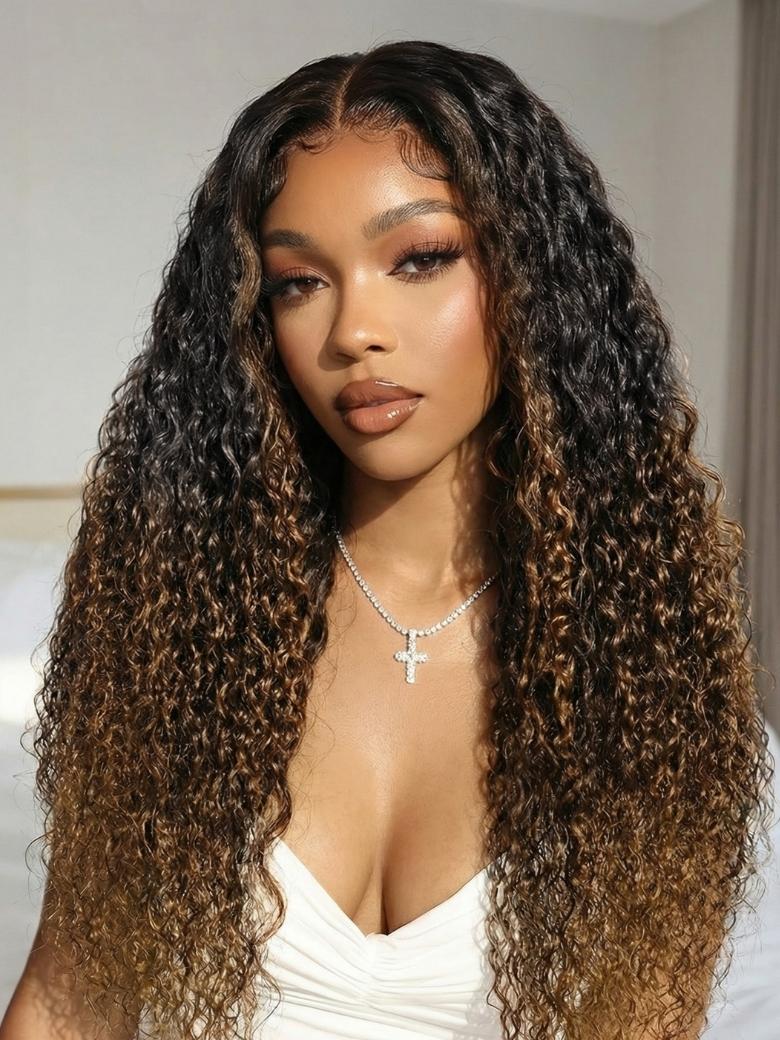 Beautyforever 7x5 Bye Bye Knots Glueless Lace Wigs Ombre Chestnut Brown Water Wave & Curly Human Hair Wig