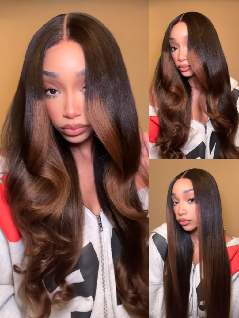Beautyforever Chestnut Brown Ombre Yaki Straight Wig 7x5 Bye Bye Knots Lace Closure Glueless Human Hair Wigs with Invisi Drawstring