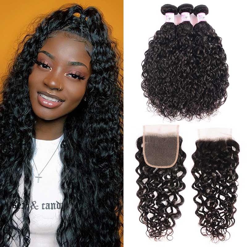 Beautyforever New Loose Water Wave 3Bundles With Peruvian Hair 4x4 Lace Closure