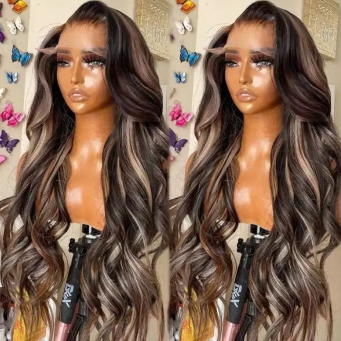 Beautyforever Chocolate Brown Highlight 13x4 Transparent Lace Wigs Body Wave Hairstyle