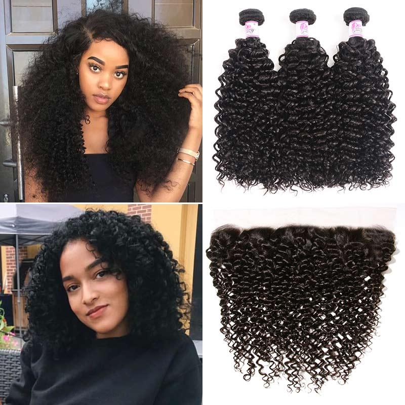 Beautyforever Curly Hair Pre-plucked 13*4 Transparent Lace Frontal With 3Bundles 100% Human Hair