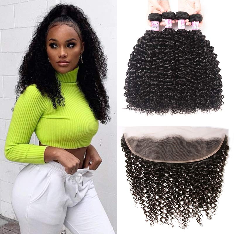 Beautyforever Pre-plucked Lace Frontal Closure With 4Bundles Indian Jerry Curly Hair
