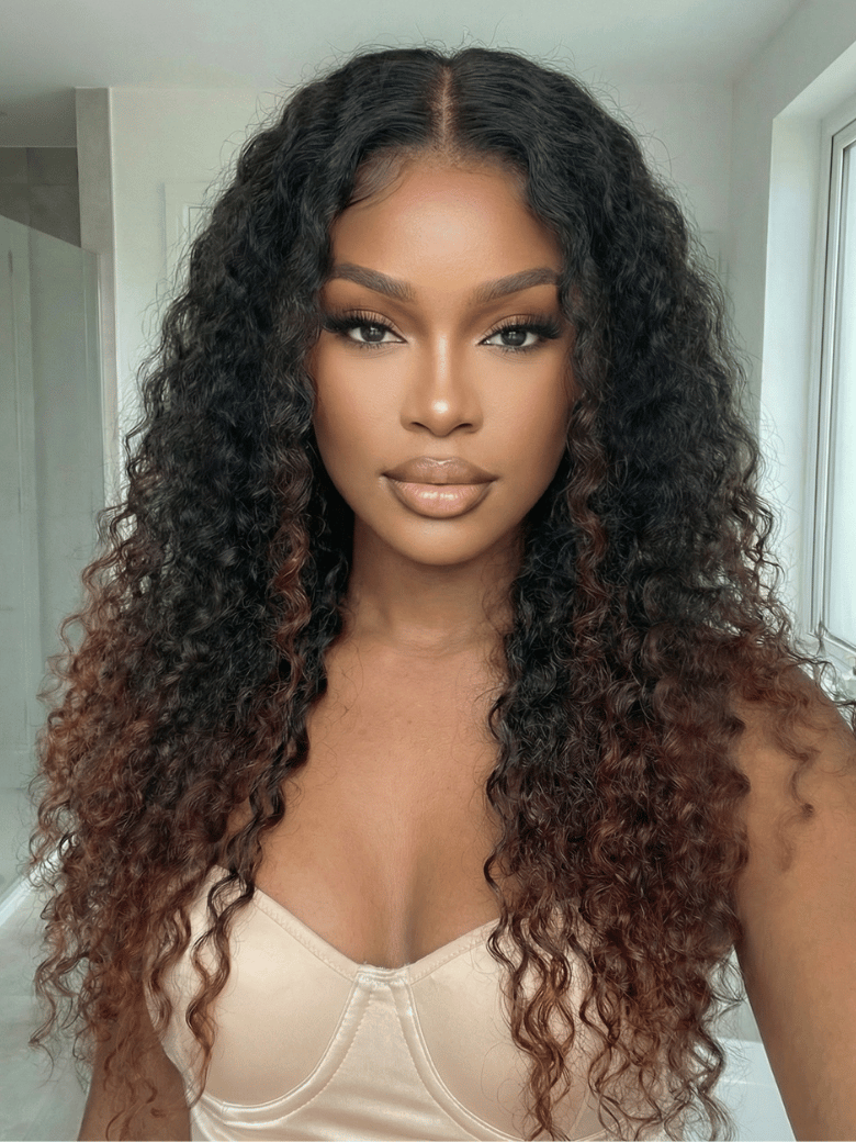 Beautyforever EasiContour V-Part Wig Ombre Auburn Reddish Brown Yaki Texture Curly Human Hair 100% Glueless