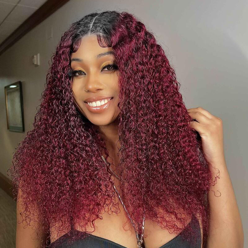 Beautyforever Everyday Flash Sale Ombre Burgundy Color V Part Wig Human Hair Jerry Curly Colored Wigs
