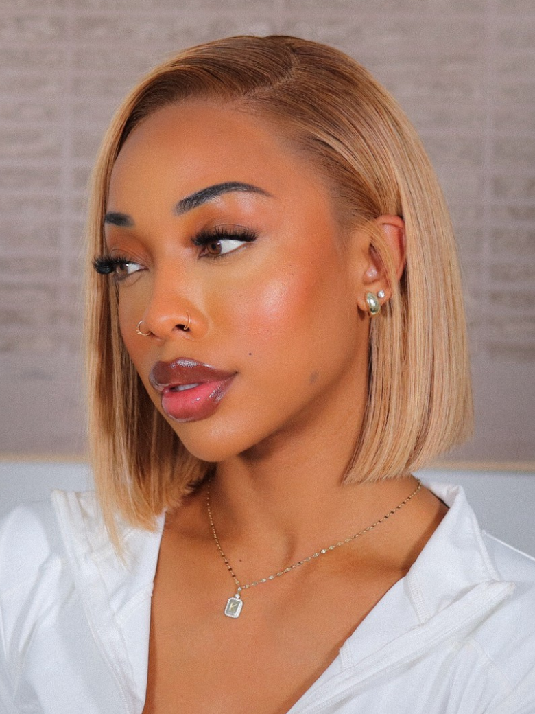 Beautyforever 7x5 Lace Bye Bye Knots Blonde with Brown Roots Side Part Blunt Bob Wig