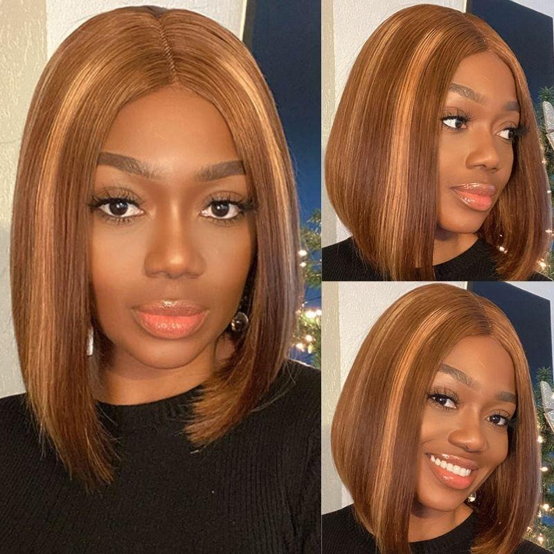 Beautyforever Flash Sale Piano Brown Highlight Bob Wigs 13x5 Transparent Lace T Part Short Straight Wig