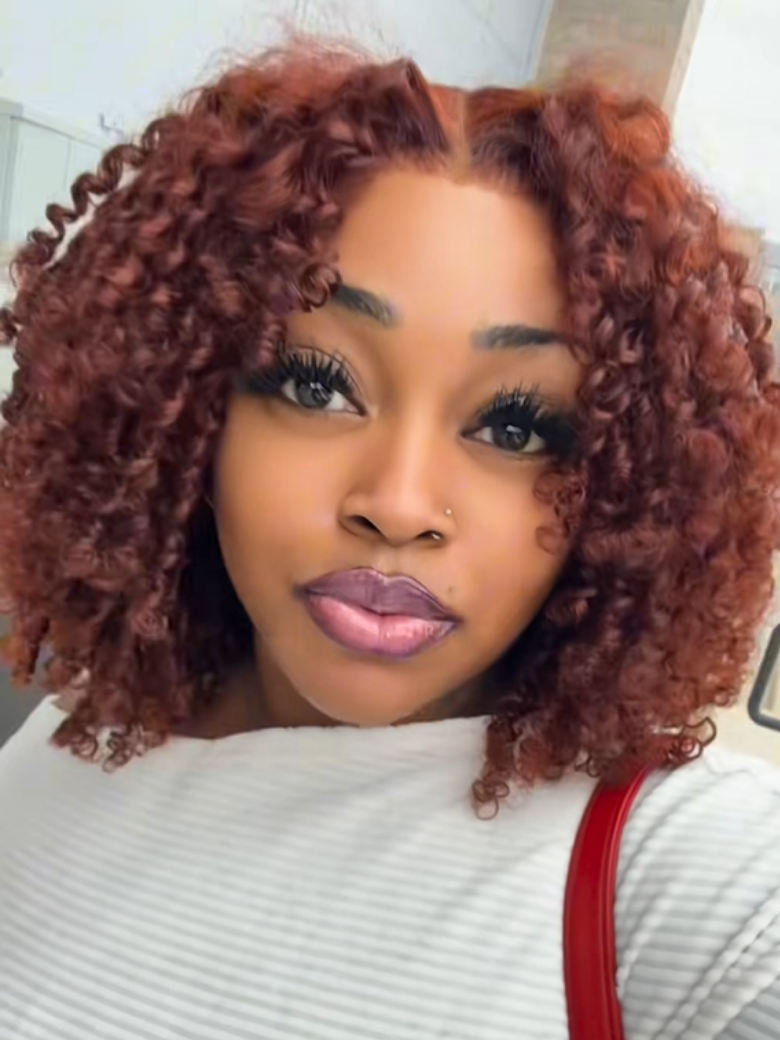 Beautyforever 7x5 Bye Bye Knots Reddish Brown Auburn Curly Wigs Put on and Go Glueless Lace Human Hair Wig