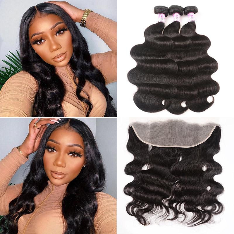 Beautyforever Free Part Ear To Ear 13x4 Transparent Frontal With 3Bundles Malaysian Body Wave