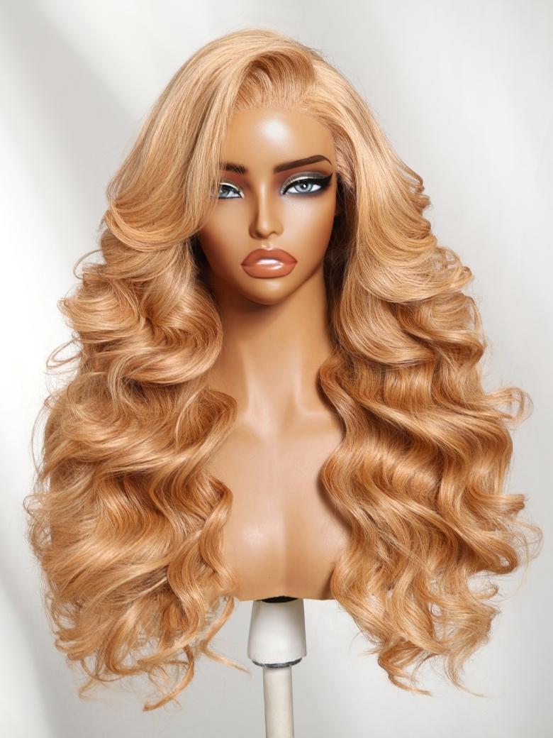 Beautyforever 13x4 Pre-everything Lace Frontal Human Hair Wig Golden Blonde Balayage Layered Loose Wave Hair With Face-Framing Curtain Bangs