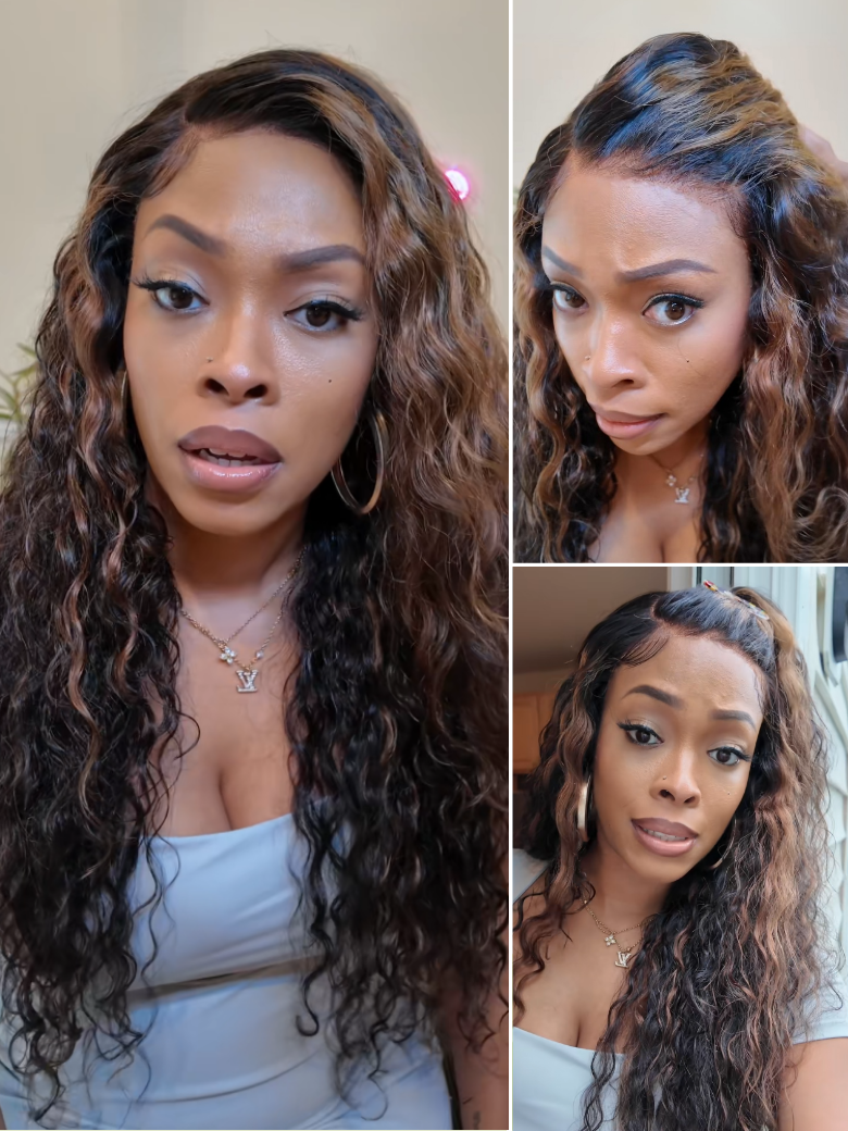 Beautyforever @lynee_monae Brown Highlight Water Wave 7x5 Bye Bye Knots Lace Closure Glueless Human Hair Wig