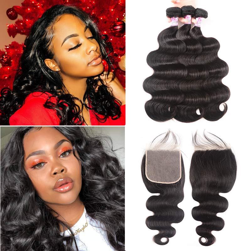 Beautyforever High-Grade 3 Bundles Peruvian Body Wave Hair With 6x6 Lace Closure For Women