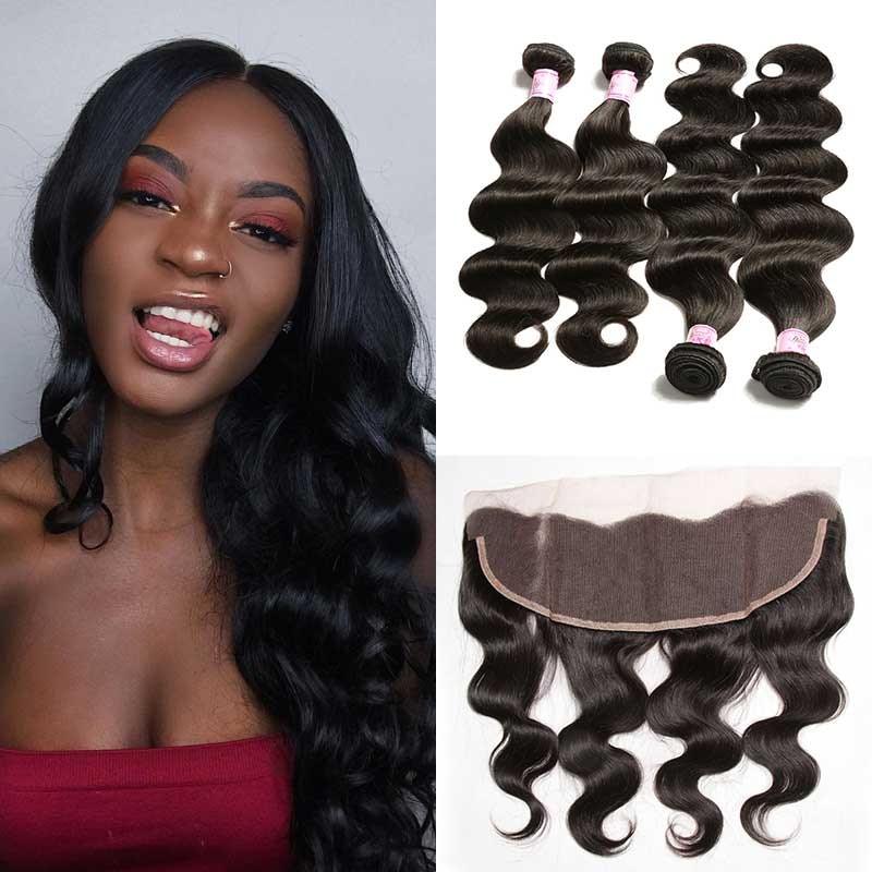 Beautyforever Hair 4Bundles with Pre-plucked Lace Frontal Closure Indian Body Wave