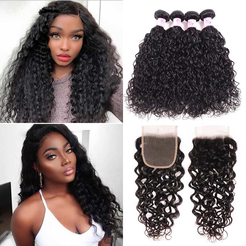 Beautyforever High Quality Malaysian Hair Loose Water Wave 4Bundles With Free Part 4x4 Lace Closure