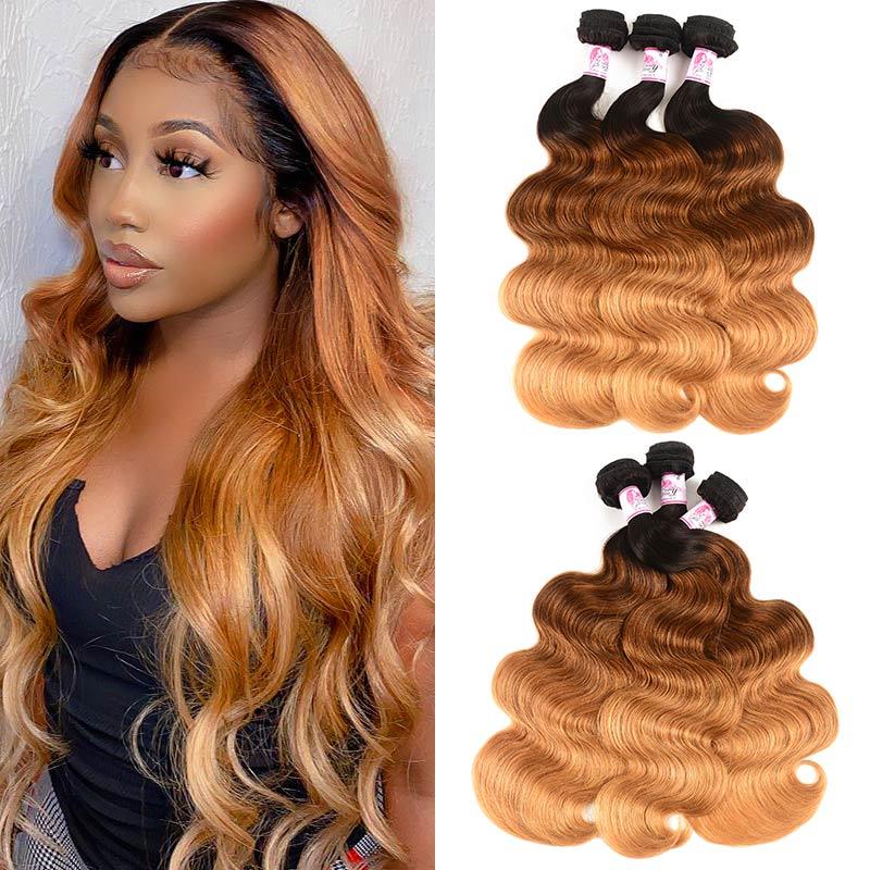 Beautyforever 3Bundles Indian Body Wave Ombre Human Hair Weaves T1B/4/27
