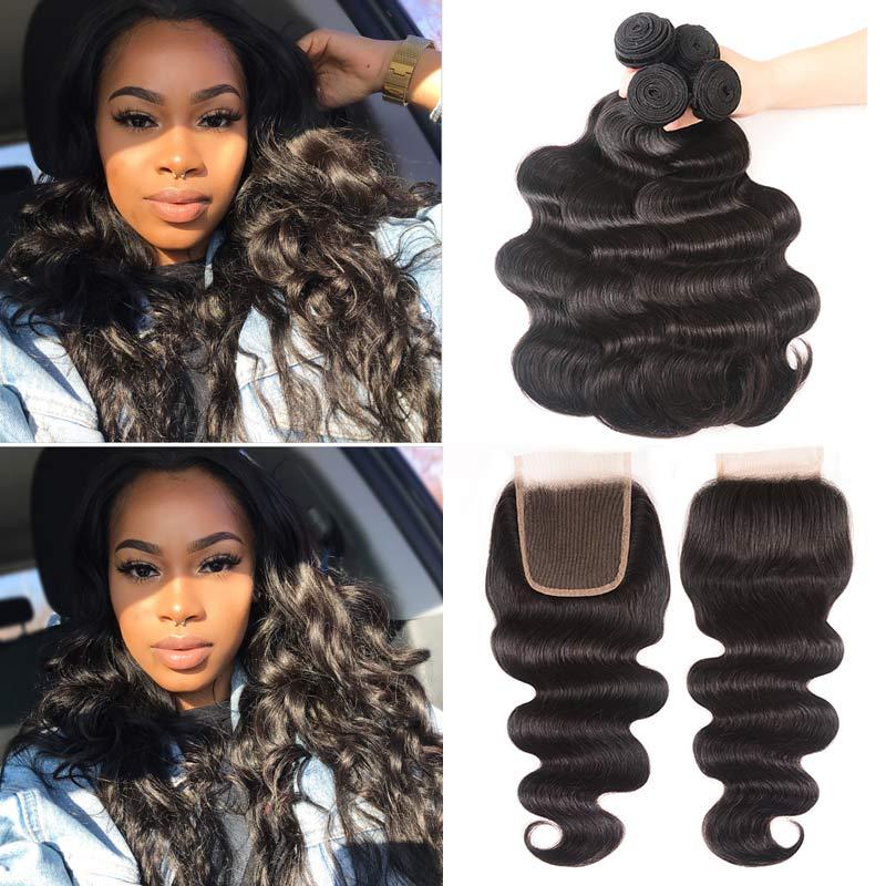 Beautyforever Indian Human Hair Body Wave 4Bundles With 4*4 Lace Closure