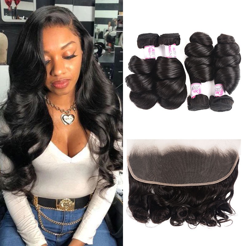 Beautyforever Indian Loose Wave 4 bundles With 13*4 Lace Frontal Closure