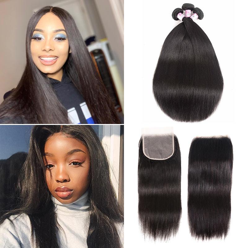 Beautyforever Indian Straight 3 Bundles With Free Part 5x5 HD Lace Closure