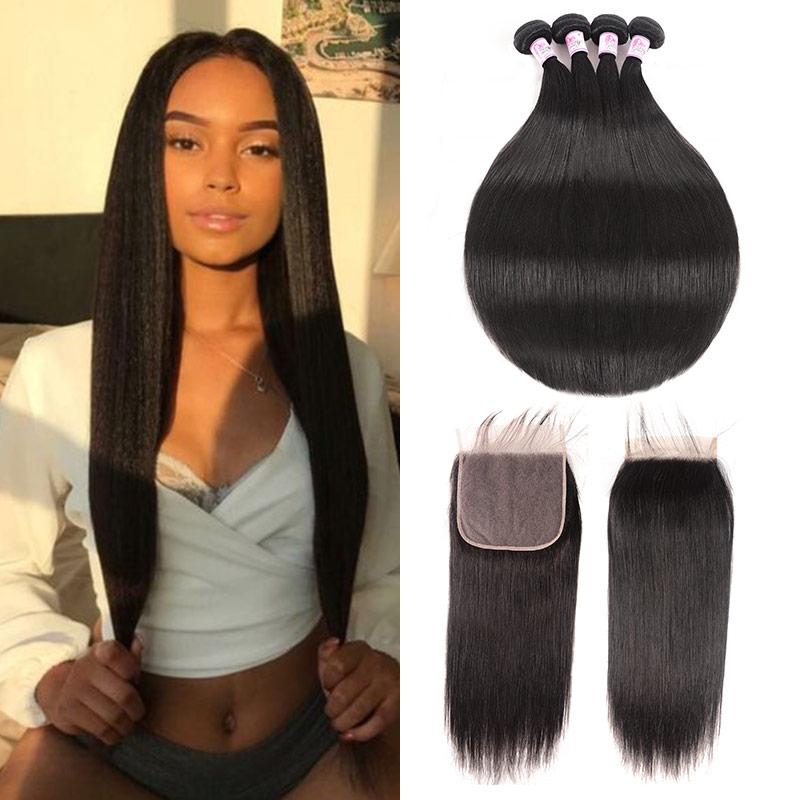 Beautyforever Indian Straight Lace Closure 7*7 Inch With Human Hair 4Bundles