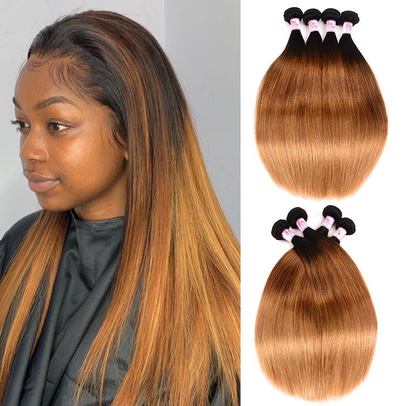 Beautyforever Indian Wavy Hair 4Bundles Ombre Straight Human Virgin Hair
