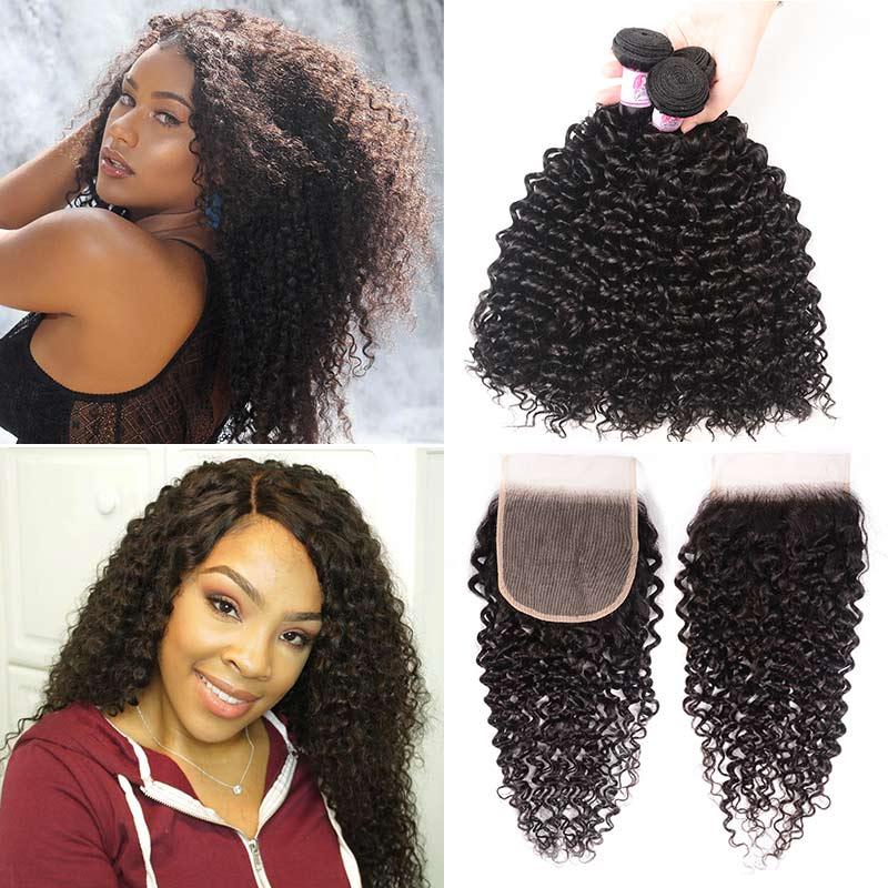Beautyforever Jerry Curly Hair 3 Bundles With 5x5 Transparent Lace Closure Brazilian Hair