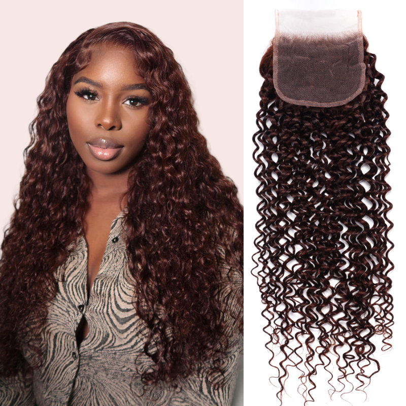 Beautyforever Jerry Curly Virgin Hair 4x4 Lace Closure Dark Red Brown Hair