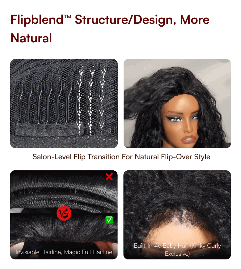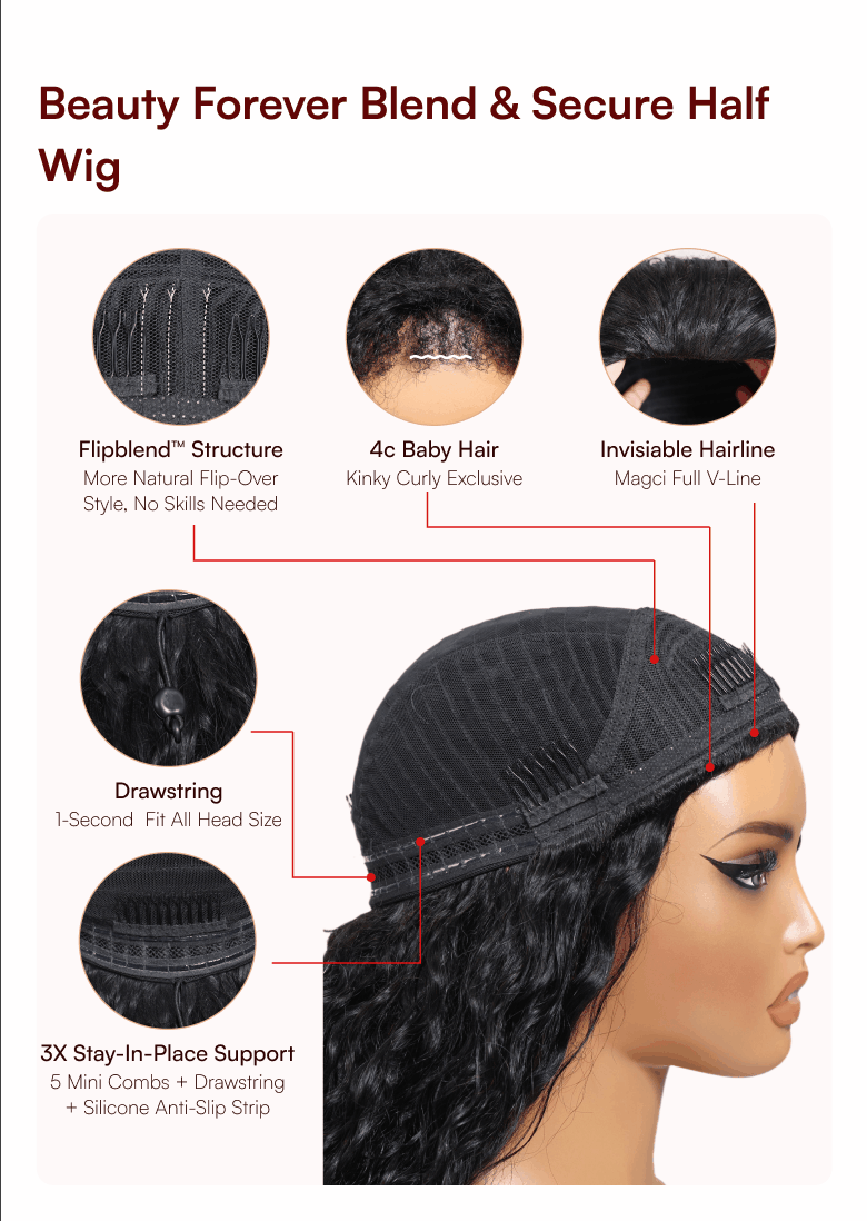 Beautyforever Flip Over 3/4 Half Wig Kinky Curly Glueless Human Hair Wig with 4C Edge and Invisi-Drawstring
