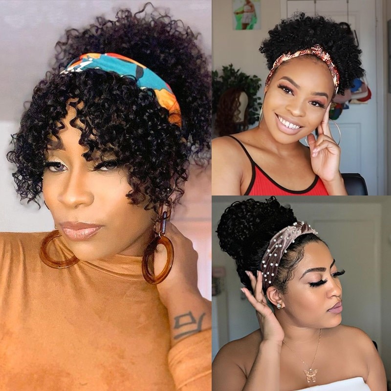 Beautyforever Kinky Curly Headband Wig With Bangs Detachable Short Wigs Human Hair Natural Color 150% Density