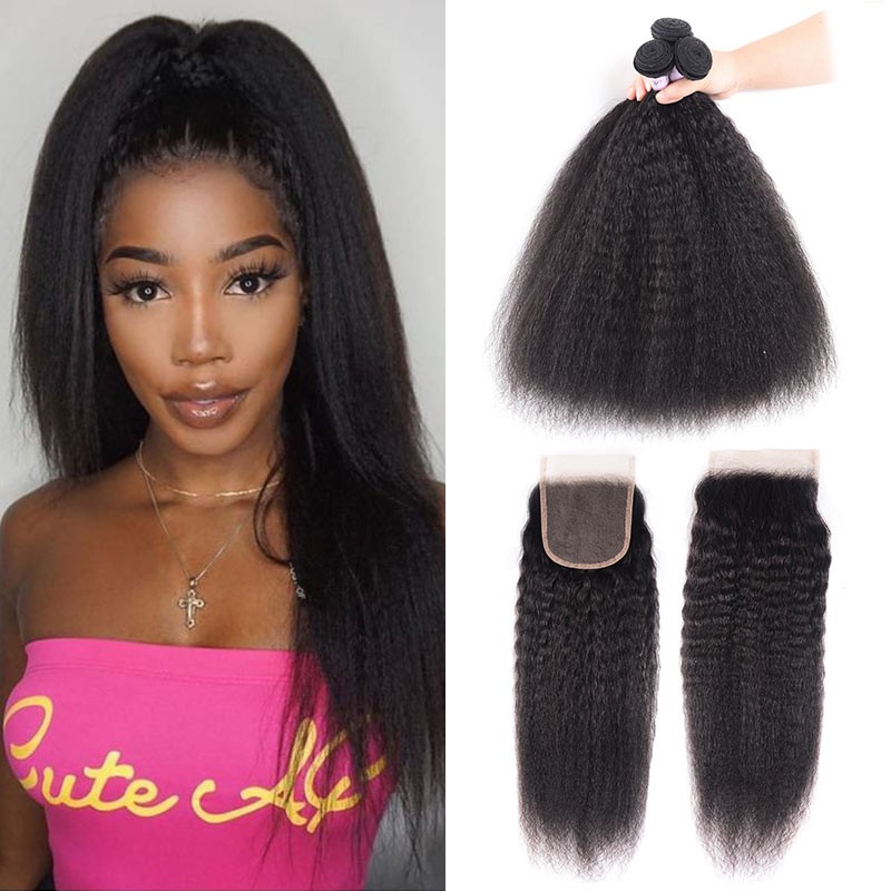 Beautyforever Yaki Straight Sew In 3 Bundles With 4x4 Closure