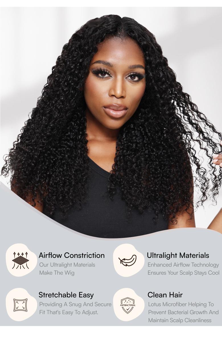 Beautyforever Kinky Straight With Spiral Curly Ends V-Part Wig Real Scalp Blend Natural Hair Put on and Go Glueless Human Hair Wig