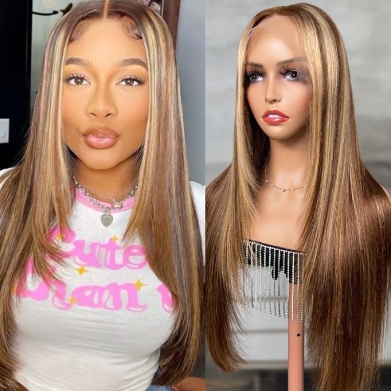 Beautyforever Lace Front Wig Highlight Brown Color Straight Layer Inner Buckle Wig Face Framing