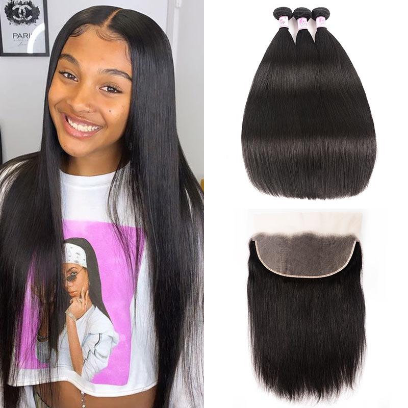 Free Make Into Wig Long Straight Hair 3Bundles With 13x6 Lace Frontal Closure Virgin Hair
