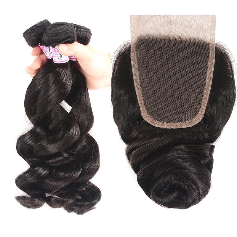 Beautyforever Loose Wave Human Virgin Hair 3Bundles With 4x4 Lace Closure Natural Color