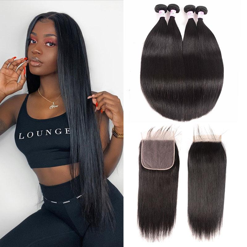 Beautyforever Malaysian 4 Bundles Straight Virgin Hair With 7*7 Lace Closure Natural Color On Sale