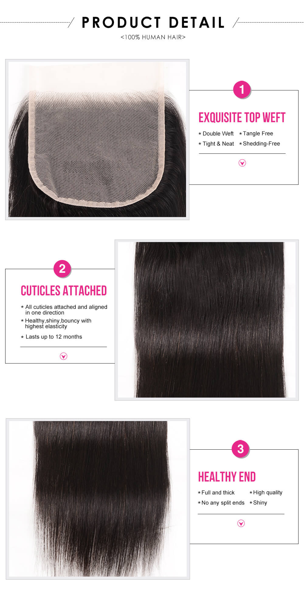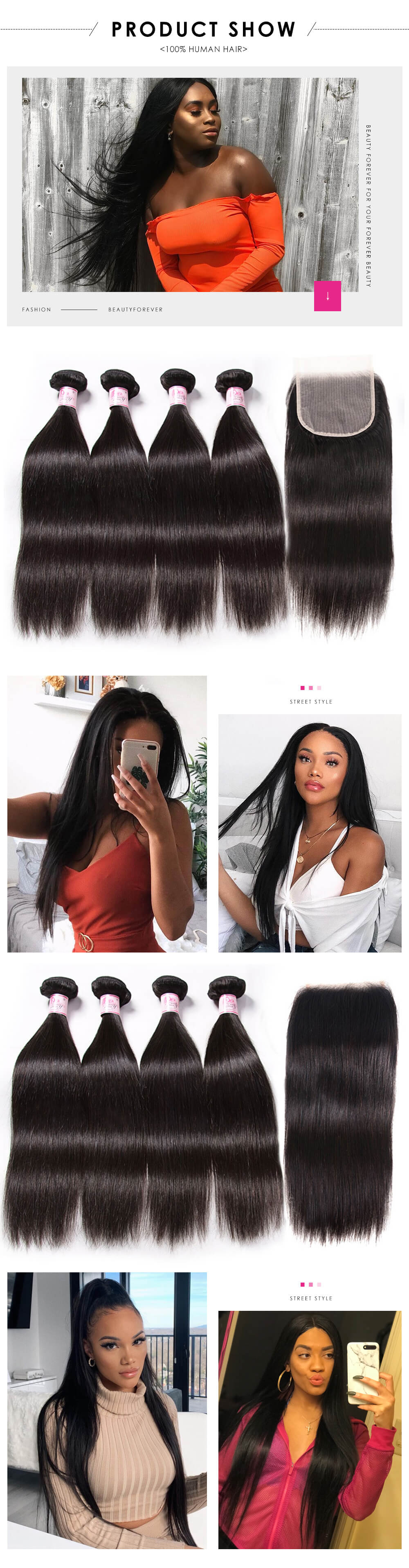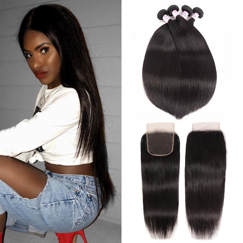 Beautyforever Malaysian Human Hair Straight 4Bundles With 4x4 Lace Closure