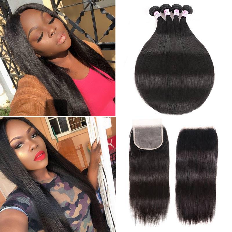Beautyforever Malaysian Straight Weave Free Part 5x5 HD Transparent Lace Closure With 4Bundles