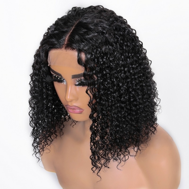 Beautyforever Natural Black Bouncy Jerry Curly T Part Lace Bob Wigs
