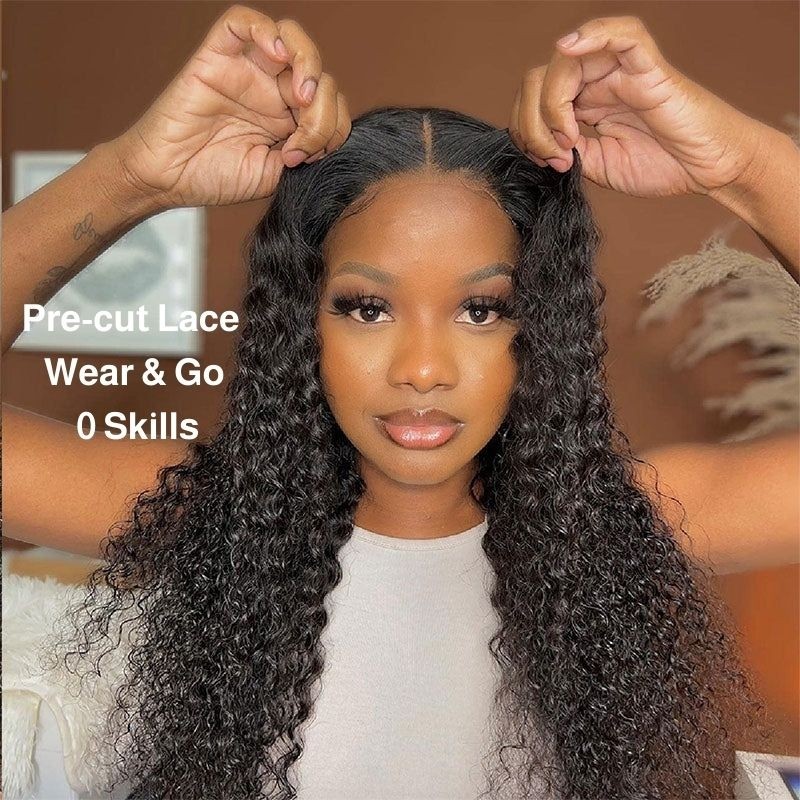 Beautyforever Guleless Natural Black Kinky Curly 7x5 Pre-Cut Lace Closure Wigs Pre-Bleached and Pre-Plucked Human Hair Wigs