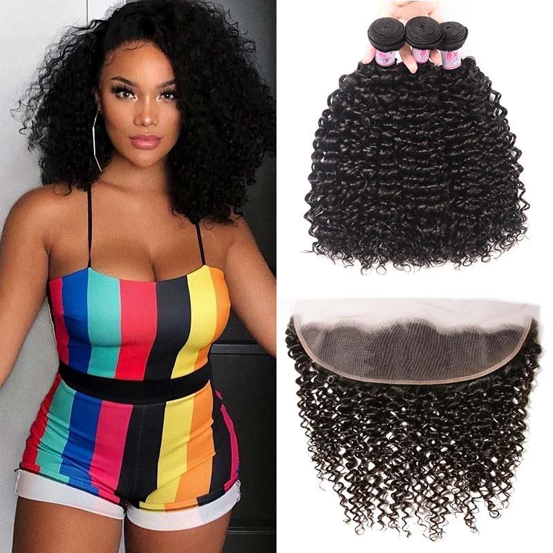 Beautyforever Natural Hairline 13*4 Lace Frontal Closure With 3Bundles Jerry Curly Hair