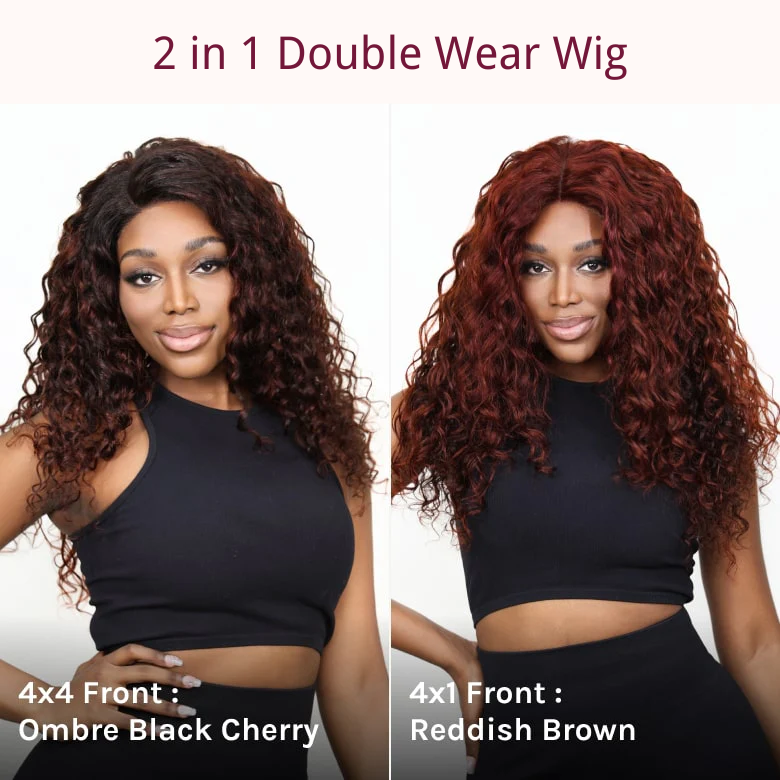 Beautyforever Ombre Black Cherry & Reddish Brown Double Wear Wig Water Wave Flip & Go Fast Transformation 100% Human Hair