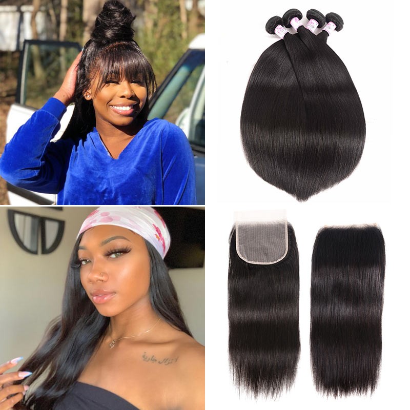 Beautyforever Peruvian 4Bundles With Free Part 5x5 HD Transparent Lace Closure Straight Hair