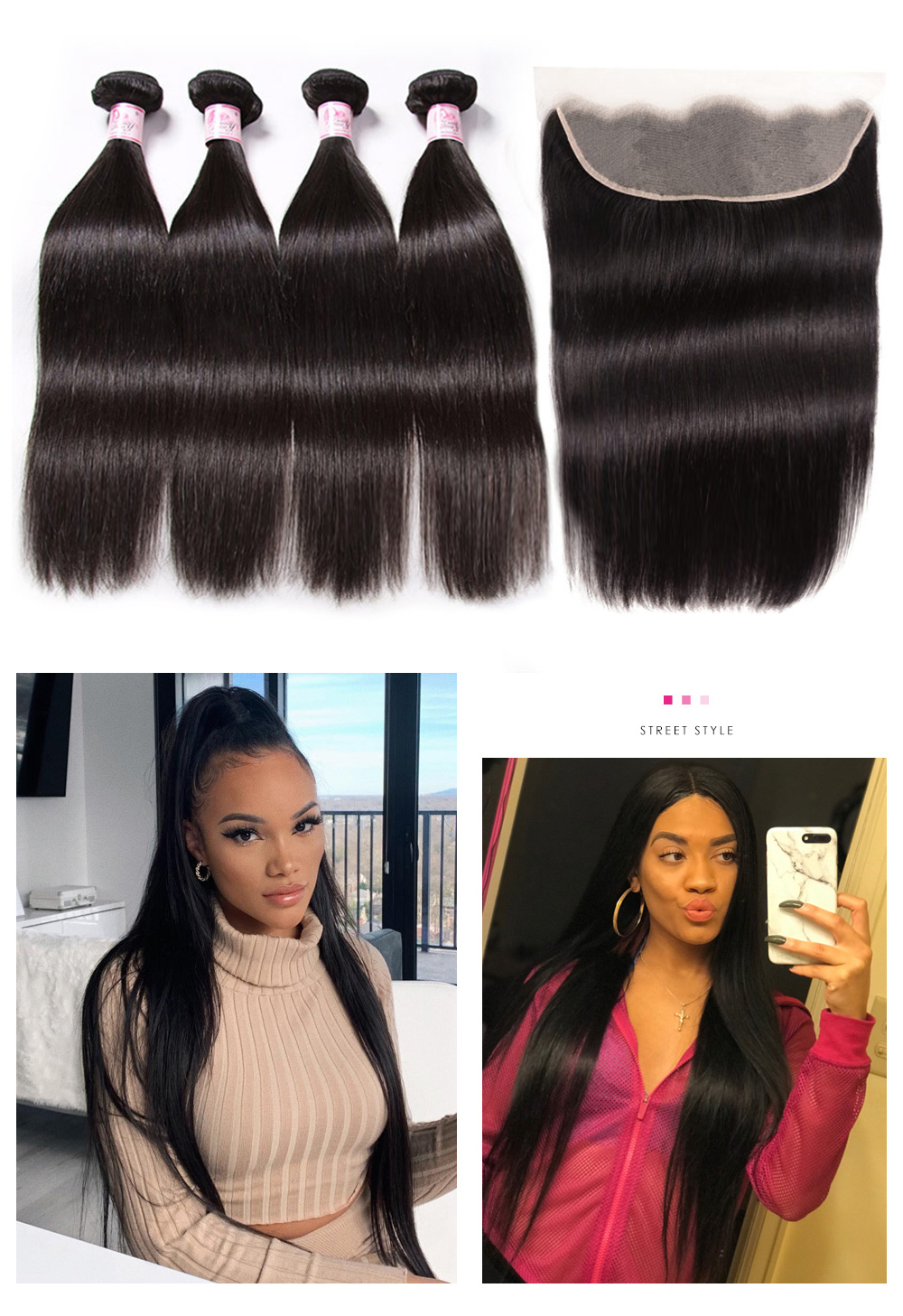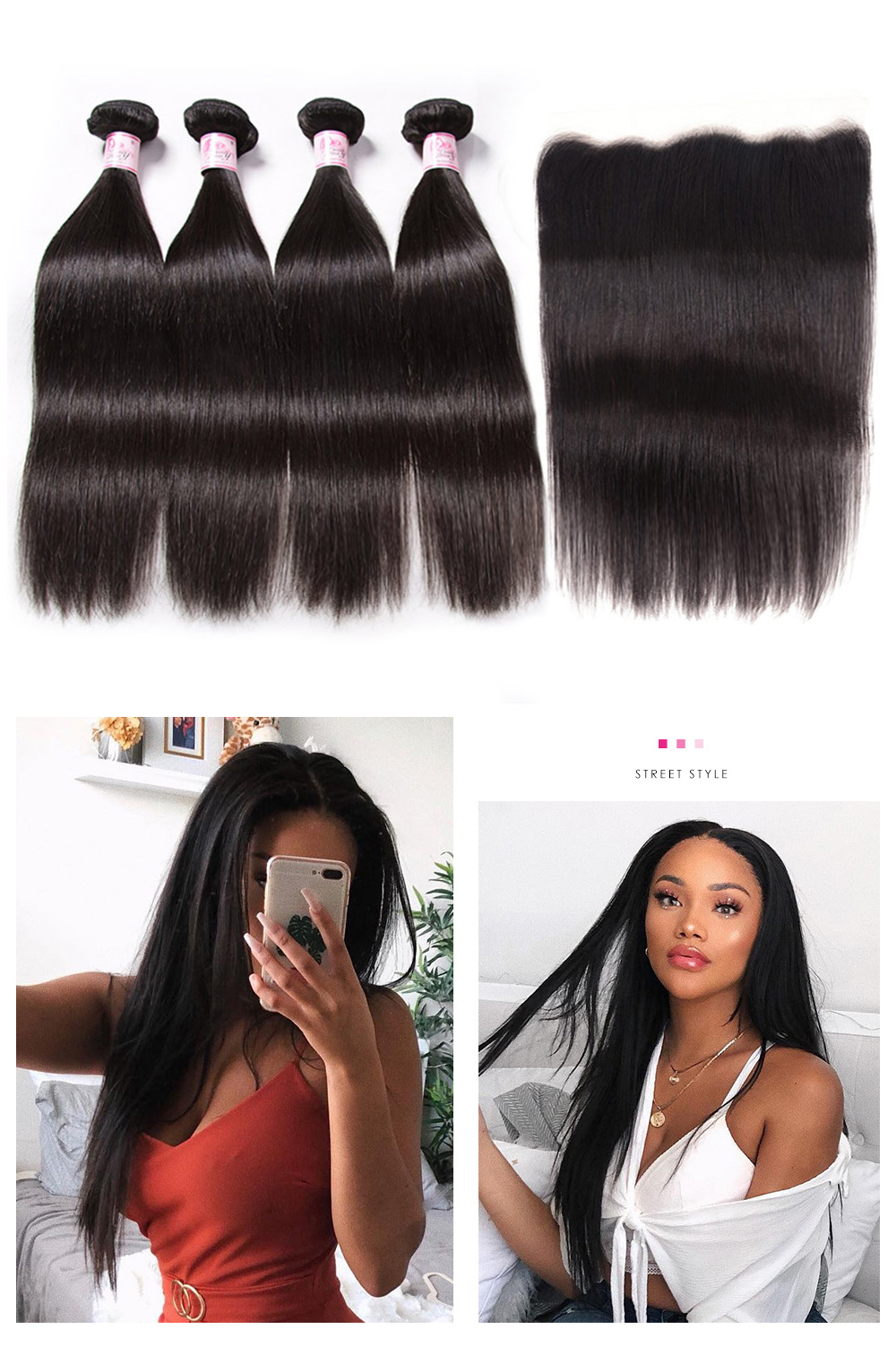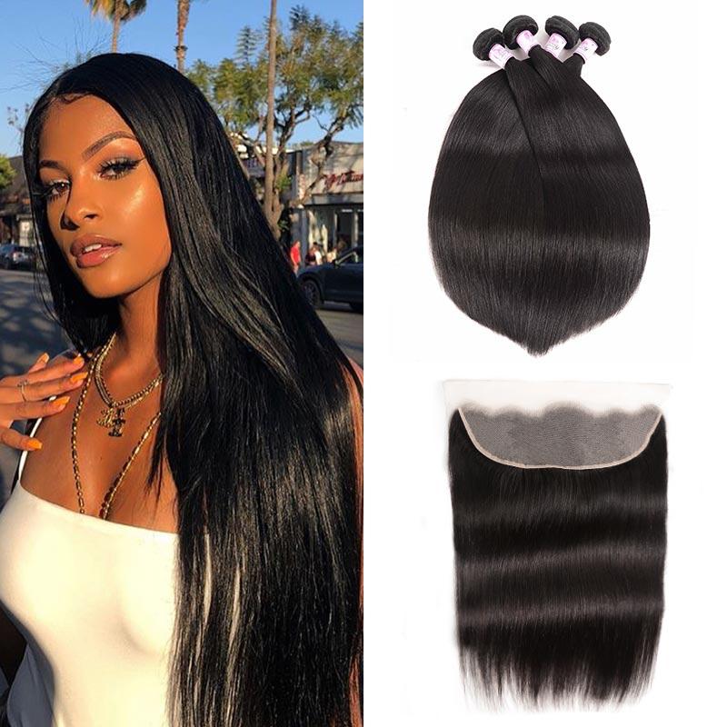 Beautyforever Peruvian Free Part 13x4 Transparent Lace Frontal With Straight 4Bundles