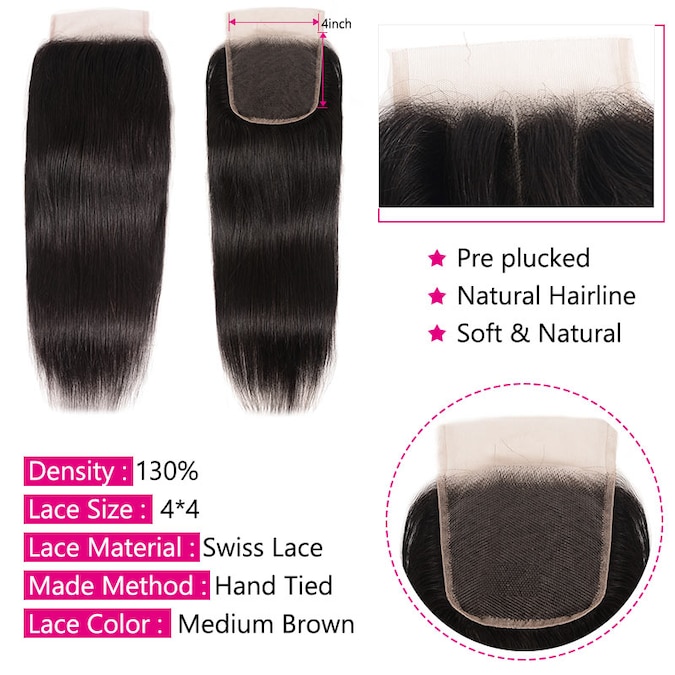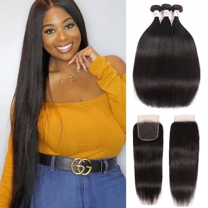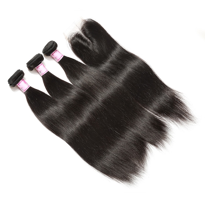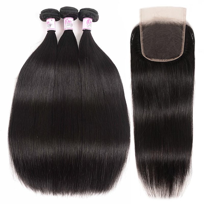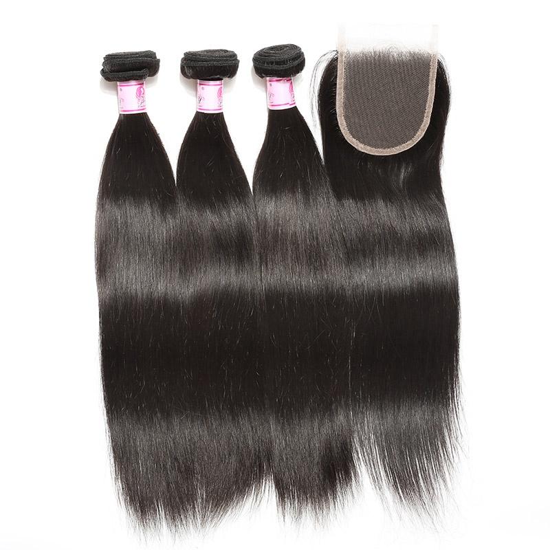 Beautyforever Peruvian Straight Hair 3Bundles With 4x4 Lace Closure