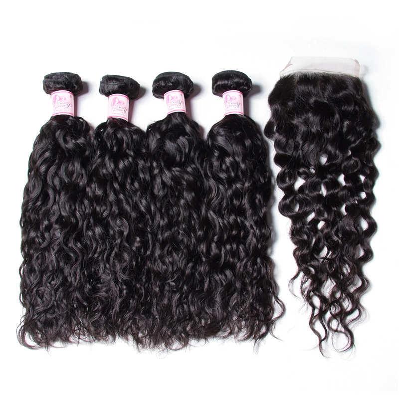 Beautyforever Peruvian Water Wave Weave 4 Bundles With Closure Virgin Hair