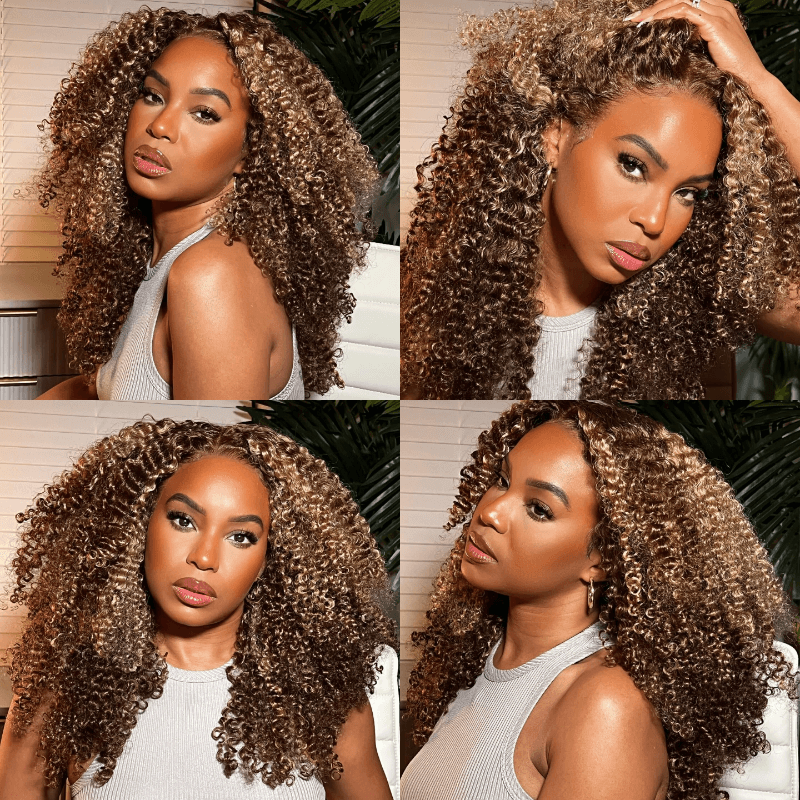 Beautyforever Pre Cut Lace TL412 Honey Blonde Glueless Kinky Curly 13x4 Lace Front Wigs with 4C Edges Baby Hair