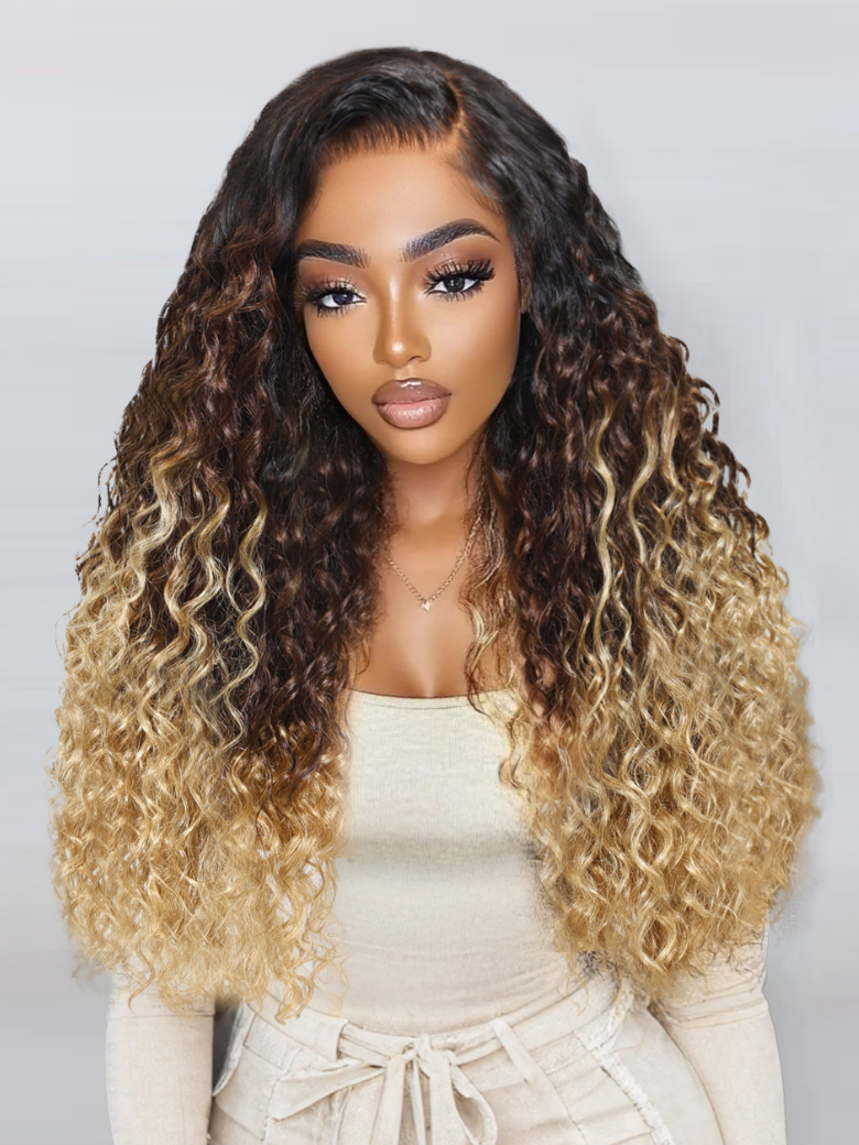 Beautyforever 7x5 Bye Bye Knots Wig Black-Brown-Blonde Blend Water Wave Human Hair Wigs with Invisible Knots