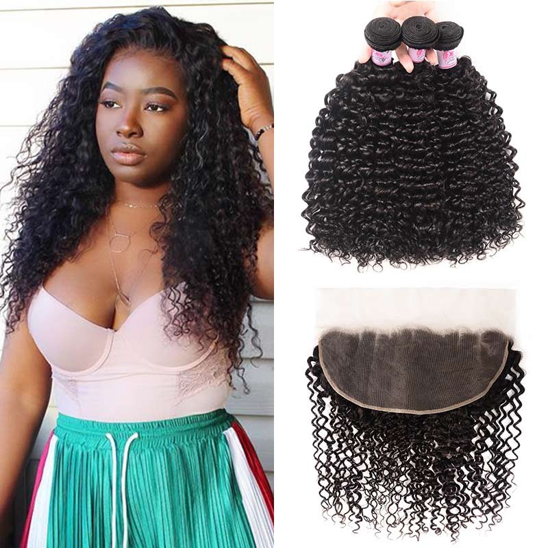Beautyforever Pre-plucked Curly Hair 3Bundles With 13x6 Lace Frontal Human Hair Free Part