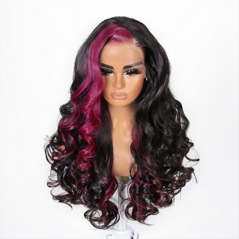 Beautyforever Purple Highlight 13x4 Lace Front Body Wave Human Hair Wigs With Baby Hair