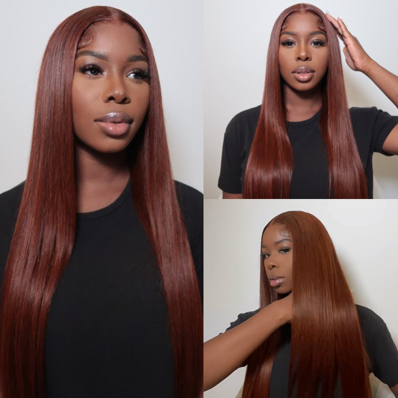 Beautyforever Reddish Brown Human Hair Lace Front Wig Straight Hair Butterfly Haircut Colored Wigs