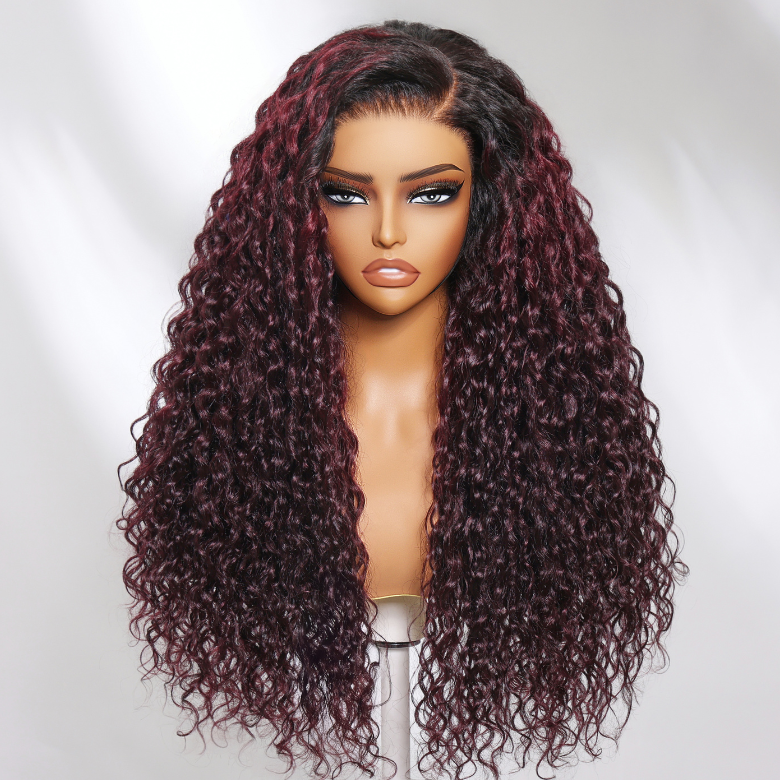 Beautyforever 13x4 Lace Frontal Burgundy Plum With Dark Roots Water Wave Pre-Everything Wig