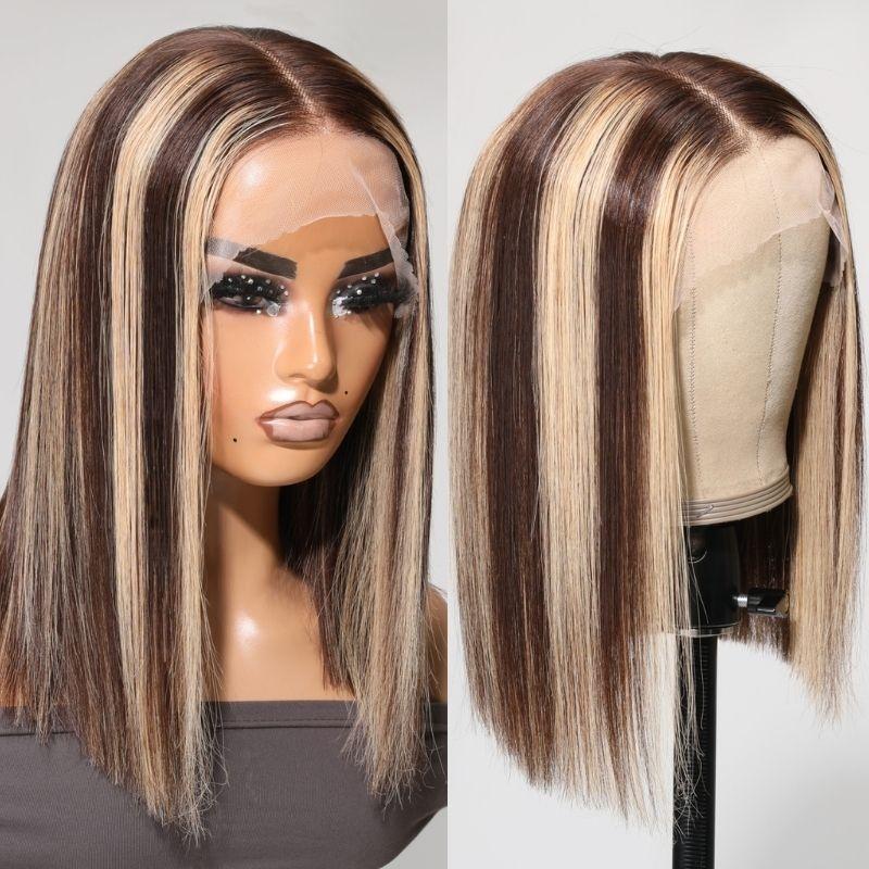 Beautyforever Straight Bob Wigs Blonde Highlight 13x4 Lace Front Wigs Human Hair Pre-Plucked with Baby Hair 150% Density